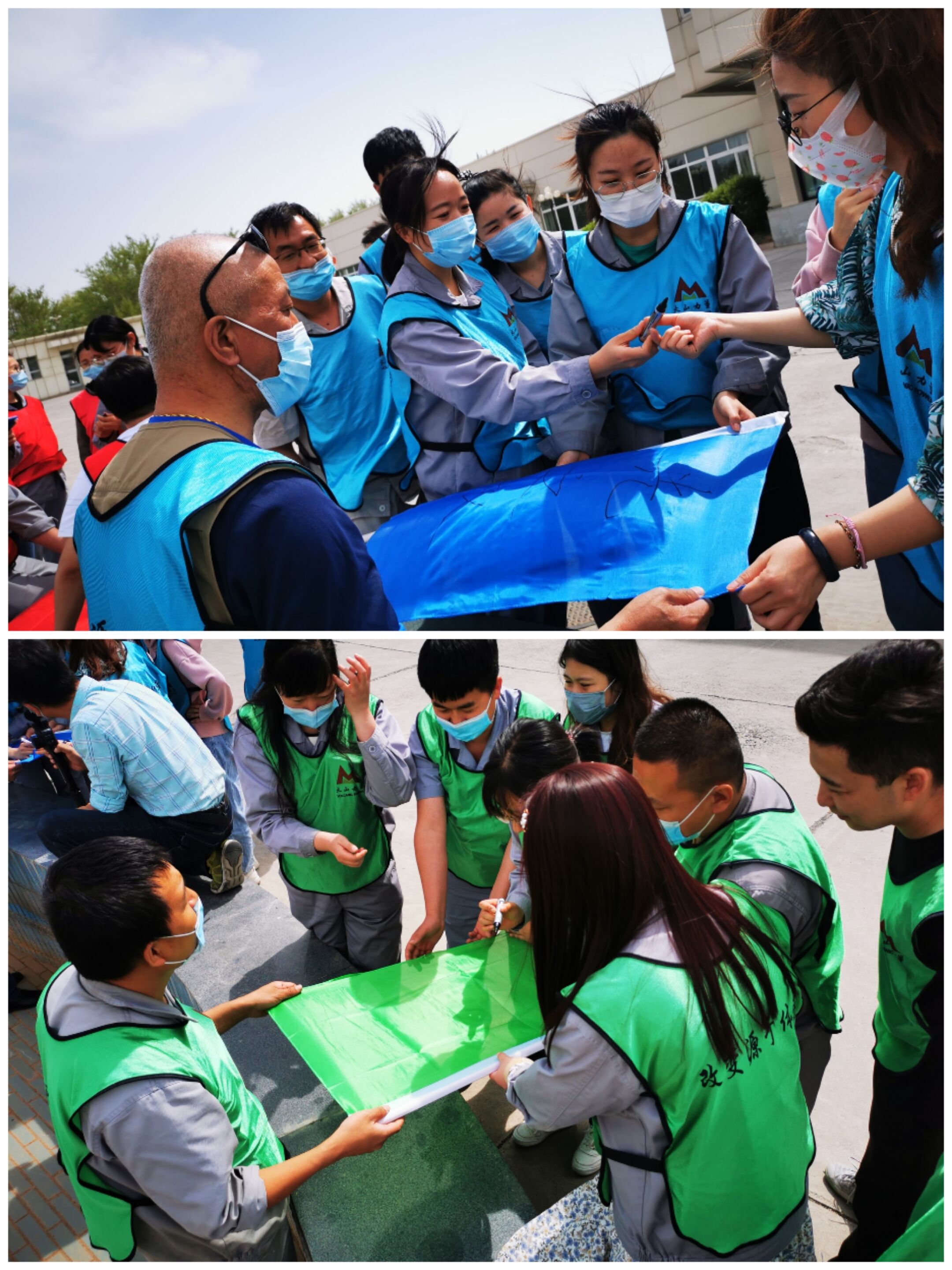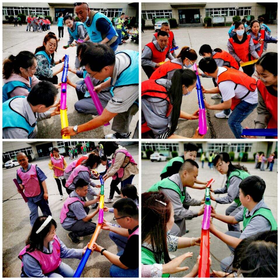隨后,活動(dòng)正式開(kāi)始。為充分體現(xiàn)團(tuán)隊(duì)間的對(duì)抗與競(jìng)爭(zhēng),本次拓展訓(xùn)練活動(dòng)共分為六個(gè)隊(duì)伍進(jìn)行,大家為各自隊(duì)伍起了隊(duì)名,制作了隊(duì)旗,分別展示了創(chuàng)意十足的隊(duì)形和霸氣響亮的團(tuán)隊(duì)口號(hào)。有極具新疆特色的天山雪蓮隊(duì),有敢于沖鋒的尖刀隊(duì),有熱情似驕陽(yáng)的向陽(yáng)隊(duì)和光之隊(duì),有不忘初心的砥礪前行隊(duì),也有柔情和神勇兼?zhèn)涞姆奂t風(fēng)暴隊(duì)。在各隊(duì)隊(duì)長(zhǎng)的帶領(lǐng)下,隊(duì)員們?nèi)σ愿?、團(tuán)結(jié)協(xié)作,完成了保護(hù)VIP、斗轉(zhuǎn)星移、鼓動(dòng)人心、拯救大兵等拓展項(xiàng)目。最后,全體成員通力合作、密切配合,共同繪制了一幅巨型畫(huà)作。
